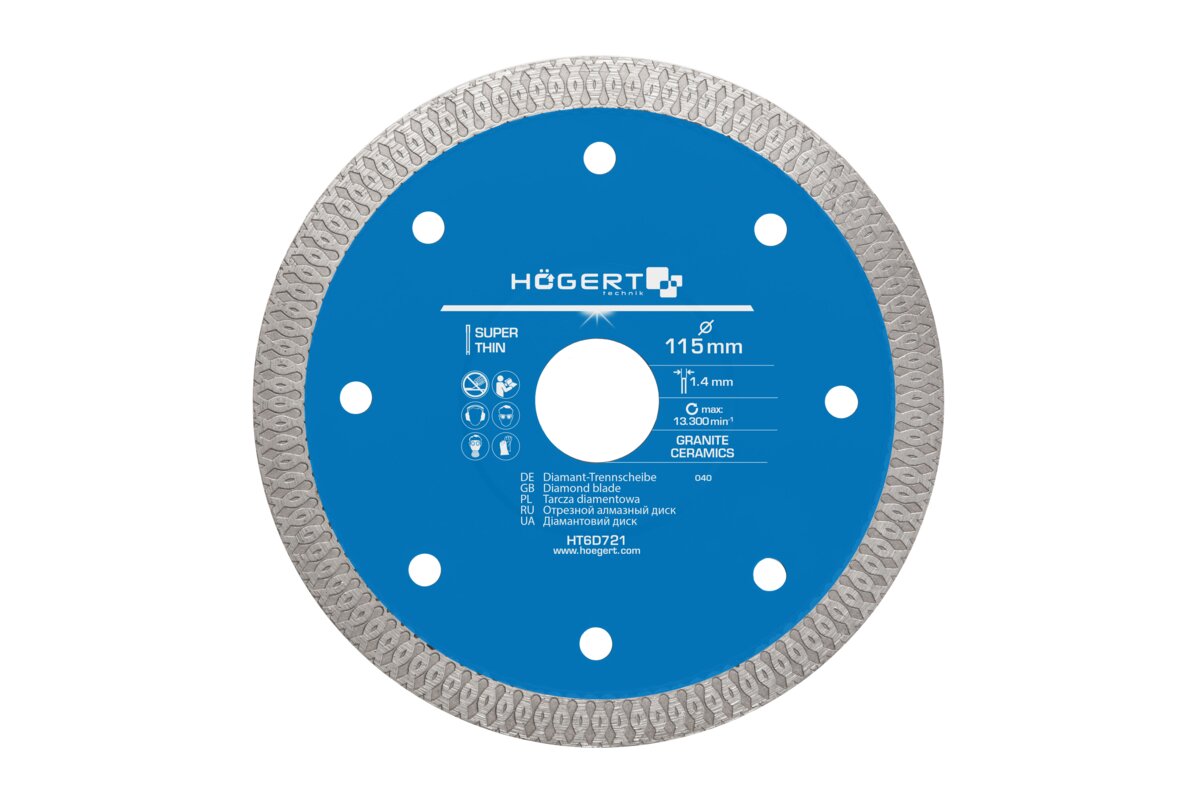 Diamond blades designed for cutting and bevelling of ceramic tiles (terracotta, glaze, porcelain stoneware, or granite).